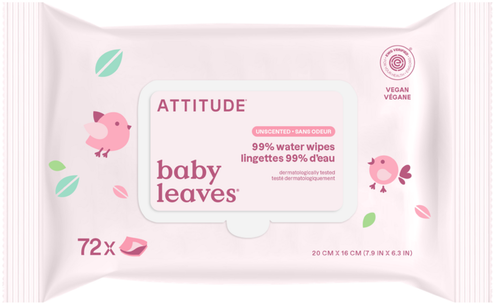 Attitude baby leaves 99% Water Wipes, 72 szt.