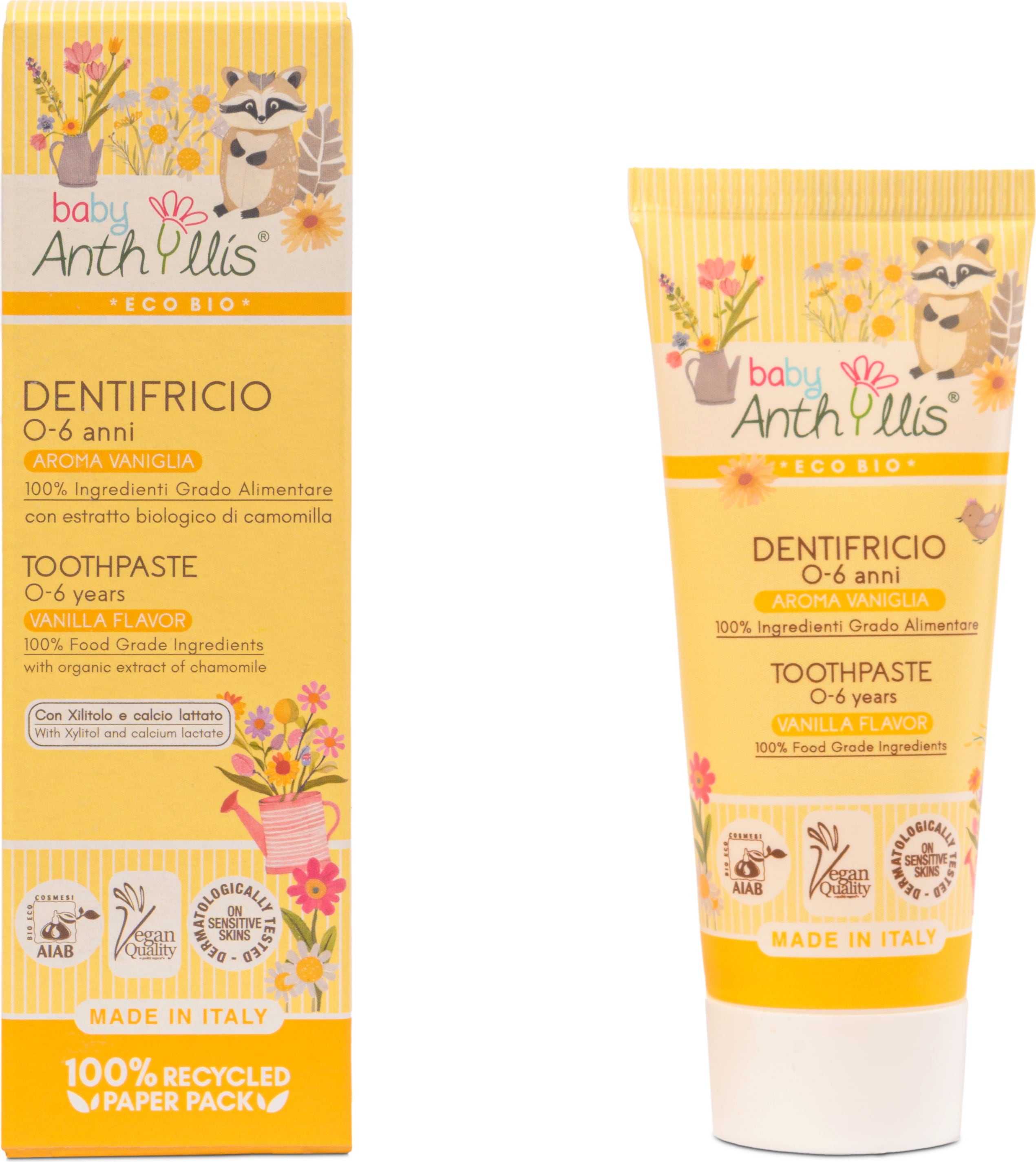Pasta do zębów Baby Anthyllis ma niski wskaźnik ścieralności i jest idealna dla dzieci w wieku od 0 do 6 lat. Jej formuła z organicznym ekstraktem z rumianku i mleczanem klakium pomaga chronić pierwsze zęby, a ksylitol i organiczny sok z aloesu wspomagają naturalną remineralizację.