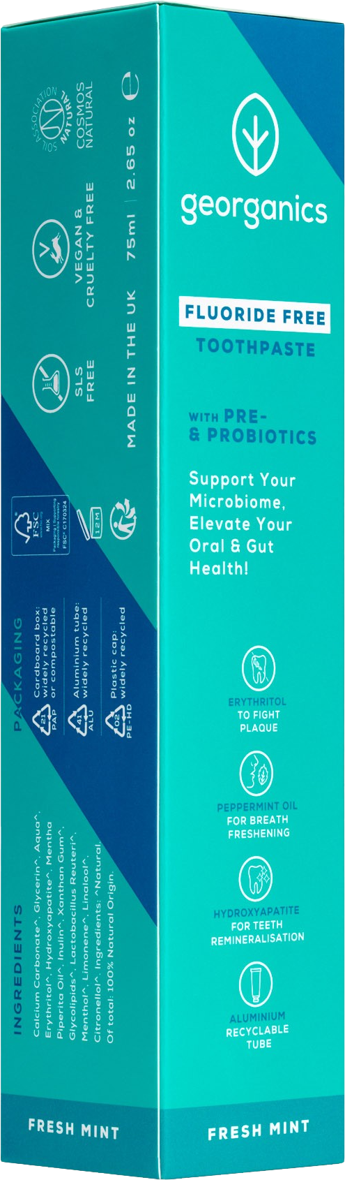 Georganics Fluoride Free Toothpaste Pre- & Probiotics, 75 ml