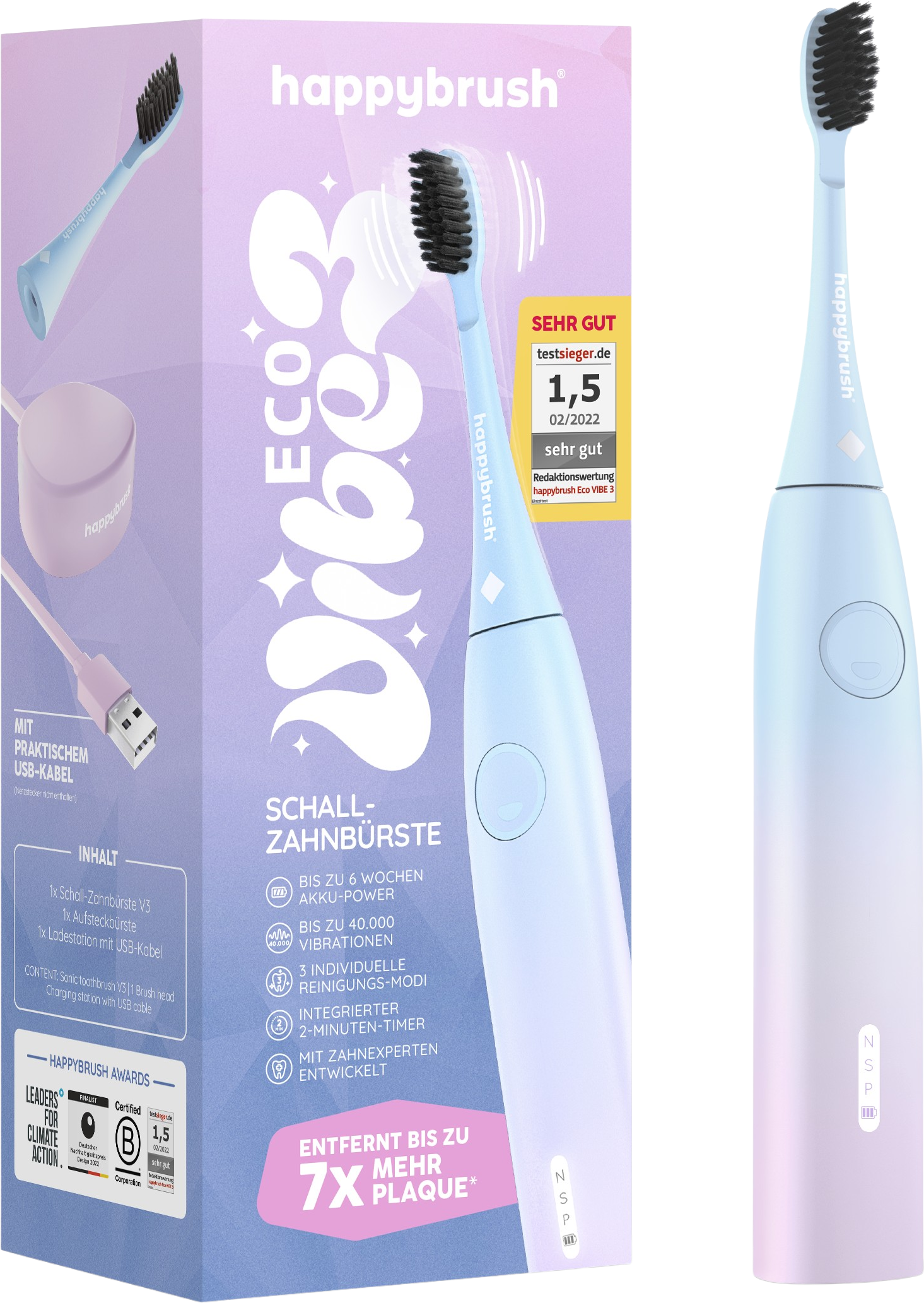 ocen klientów po polski dla happybrush ECO VIBE 3 StarterKit Sunrise - szczoteczka do zębów, zestaw startowy
