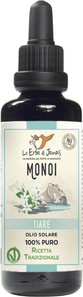 Olejek Monoi Tiaré jest znany jako tahitański zabieg upiększający oraz ze względu na swój wyjątkowy i cudowny zapach. Pochodzi on z maceracji kwiatów gardenii w tłoczonym na zimno oleju kokosowym: tylko w ten sposób można uzyskać tak intensywny aromat. Olejek jest tradycyjnie stosowany do codziennej pielęgnacji skóry i włosów. Olejek zmiękcza i nawilża skórę, chroni i odżywia włosy oraz nadaje im piękny połysk. Stosowany jest przede wszystkim podczas lub po ekspozycji na słońce, ponieważ odżywia i spowalnia proces starzenia się skóry. Jednocześnie olejek wspiera równomierną opaleniznę i pozostawia skórę miękką, jedwabistą, pachnącą i promienną. Ten produkt może być stosowany podczas opalania, ale nie zawiera filtra przeciwsłonecznego!