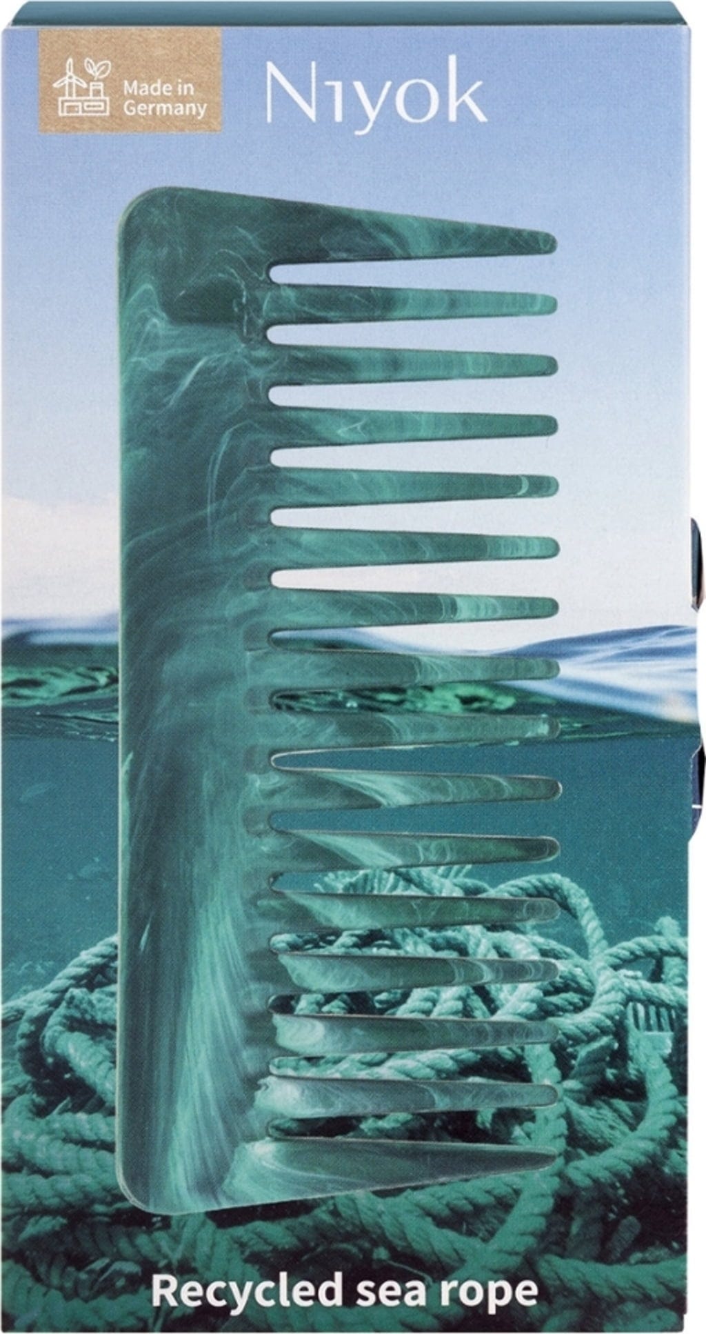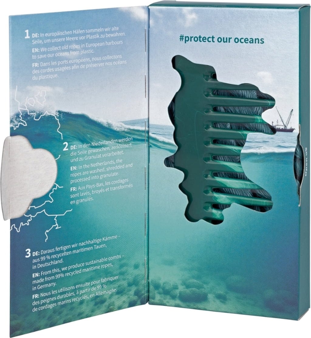 Grzebień do loków został opracowany specjalnie z myślą o potrzebach kręconych, falowanych lub cienkich włosów naturalnych. Dzięki szerokim, zaokrąglonym zębom niezawodnie rozczesuje zarówno suche, jak i mokre włosy. Jego wyrafinowany kształt wygodnie leży w dłoni i zachowuje naturalną sprężystość loków. Ponieważ grzebień został wykonany z liny morskiej pochodzącej z recyklingu, jest on również symbolem zrównoważonego rozwoju i świadomej konsumpcji.