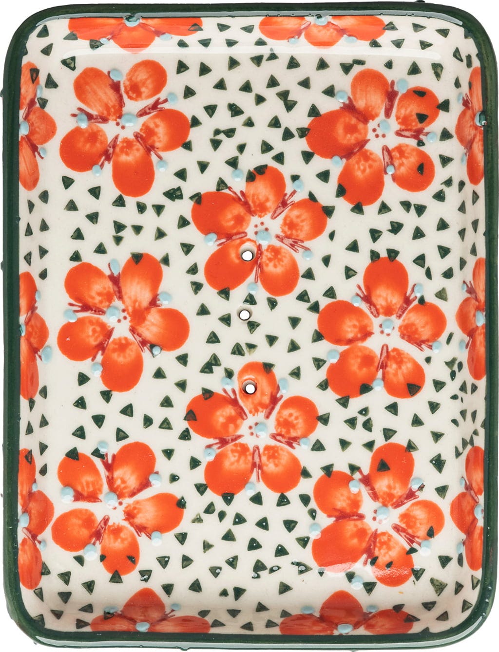 Jaskrawe kolory i kwiatowy design połączony z geometrycznymi detalami przyciągają wzrok w każdej łazience! Praktyczne otwory odpływowe sprawiają, że woda odpływa z mydelniczki, a mydło może dobrze wyschnąć po użyciu.