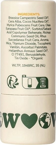 Zastosowanie: ostrożnie wysuń balsam, delikatnie dociskając podstawę tekturowej tubki. Zaaplikuj cienką warstwę balsamu na usta.