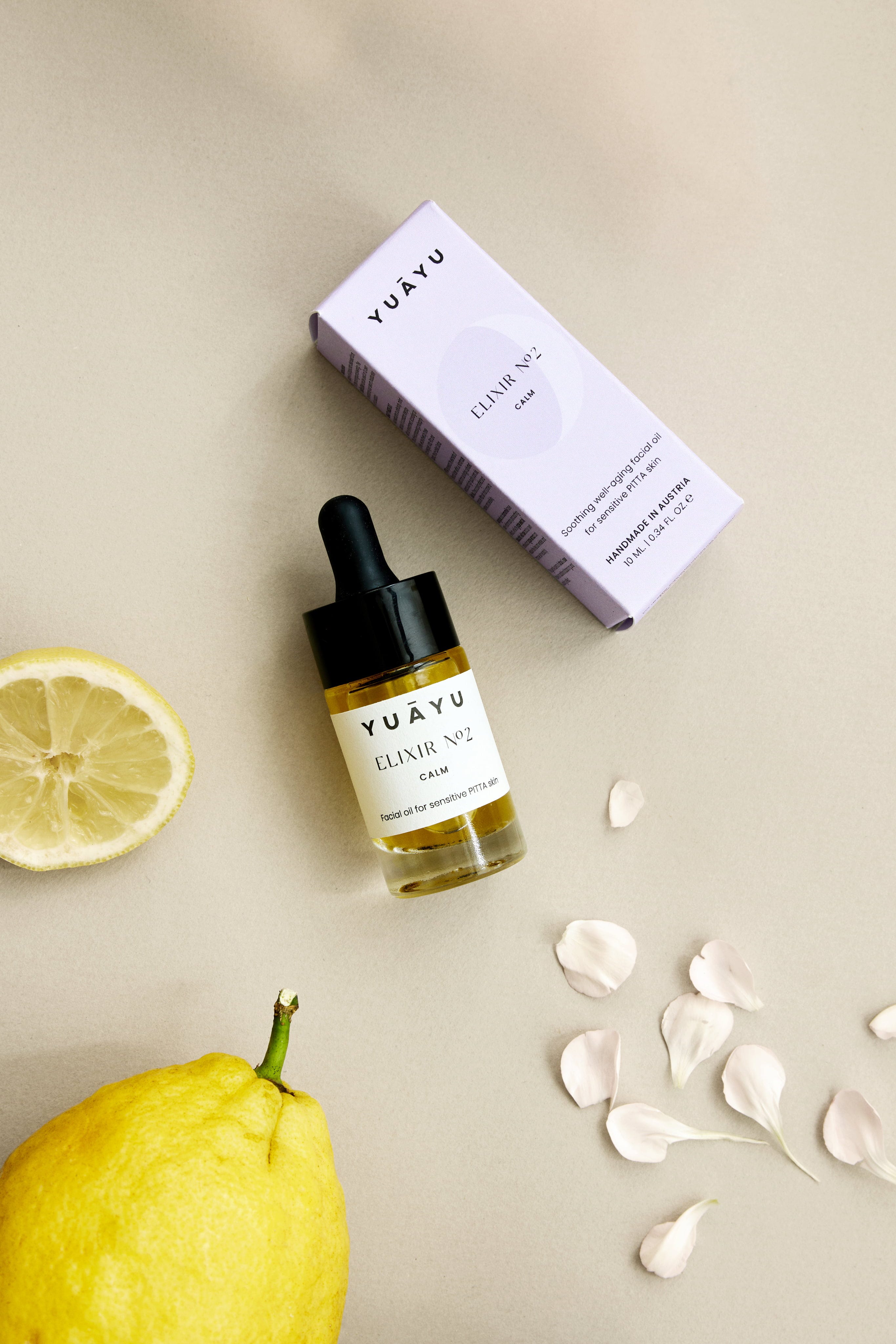Elixir No. 2 od YUĀYU to inspirowany ajurwedą olejek do twarzy ze zrównoważoną mieszanką odżywczych olejków roślinnych, opracowany specjalnie dla skóry wrażliwej i mieszanej. Składniki takie jak ekstrakty z nagietka i rumianku, olej z pestek winogron i dzikiej róży, a także 1% bakuchiol i cenny ekstrakt z alg zapewniają idealną pielęgnację skóry pitta, wspierają równowagę nawilżenia i pozostawiają skórę przyjemnie elastyczną. Delikatny zapach cytryny i róży dodatkowo rozpieszcza zmysły.
